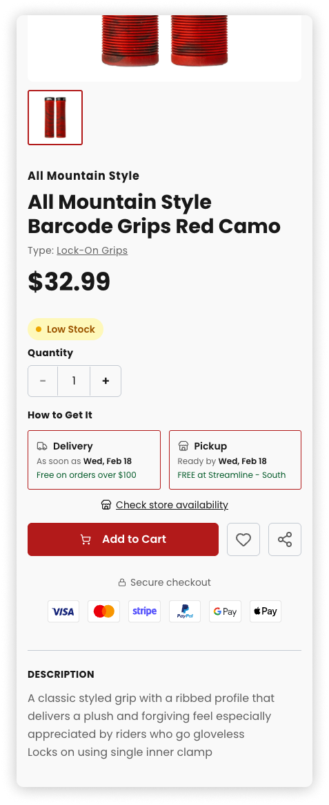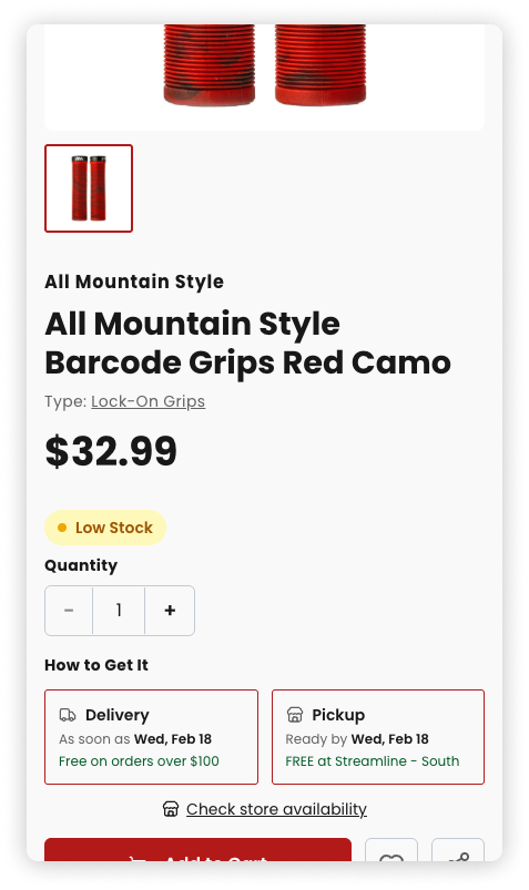When inventory runs low, customers see it. Urgency messaging and stock badges set clear expectations before purchase.